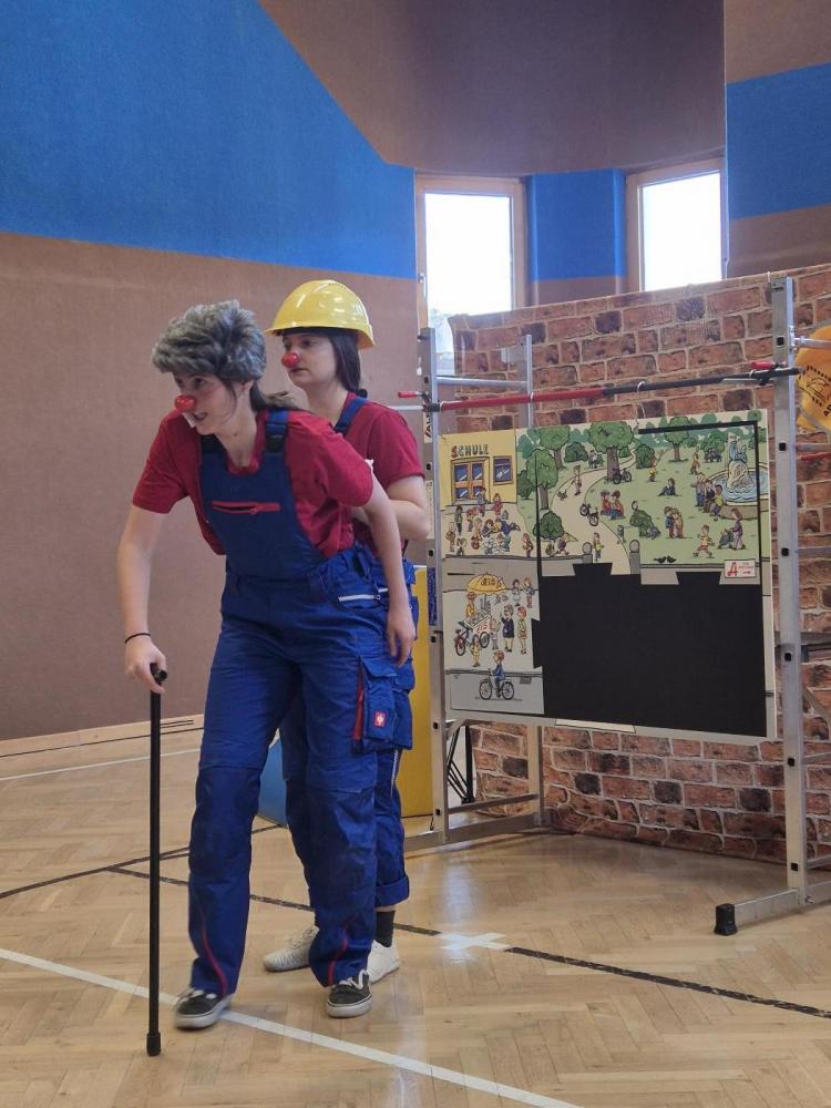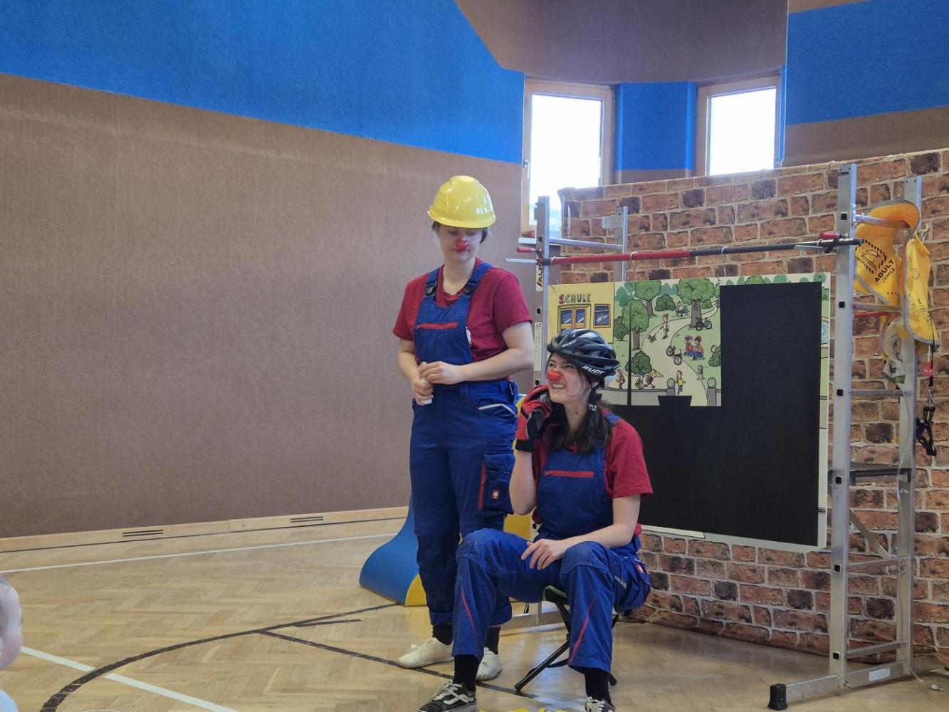 Am 18.03.2026 haben wir in unserem Turnsaal eine wertvolle, lustige Stunde zum Lachen und Mitmachen erleben dürfen. Ganz nebenbei wurden den Kindern in verschiedenen Spielszenen, großartig verkörpert von zwei Bauarbeiterinnen mit Clownnase, die folgenden Themen nähergebracht: